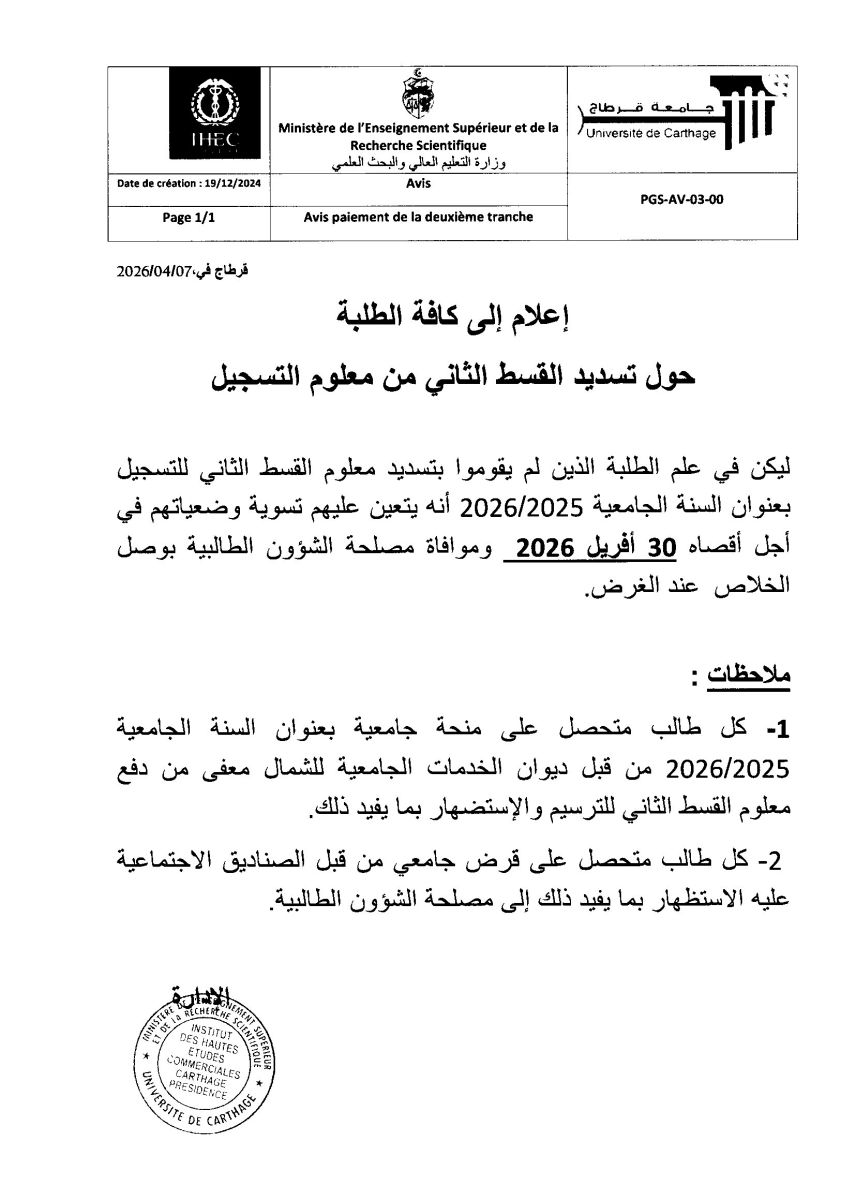 تسديد القسط الثاني من معلوم التسجيل