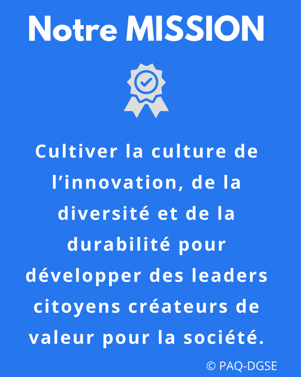 Notre mission est de cultiver la culture de l'innovation, de la diversité et de la durabilité pour développer des leaders citoyens créateurs de valeur pour la société.